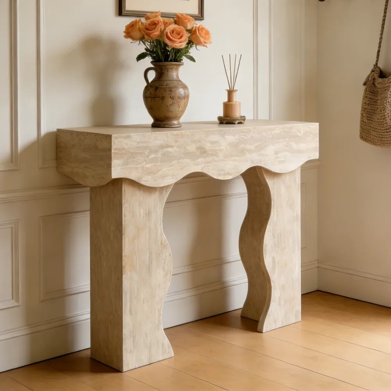 Parfaite pour les intérieurs wabi-sabi, minimalistes ou luxueux et modernes, cette console est bien plus qu'une simple surface fonctionnelle : c'est une pièce maîtresse qui transforme n'importe quelle entrée, couloir ou salon en un espace d'une sophistication discrète et naturelle.